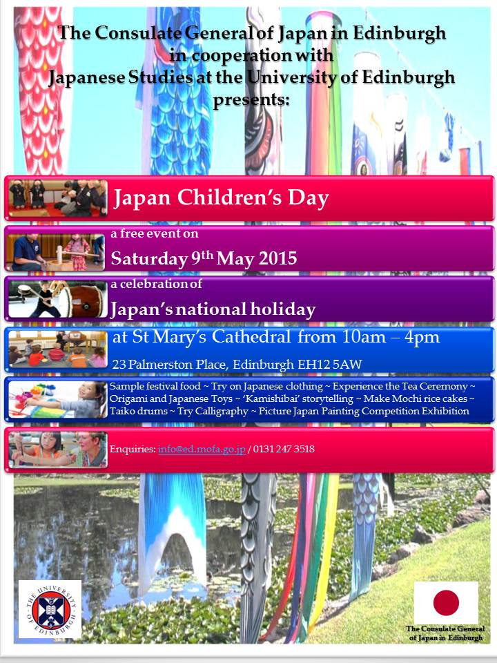 The Consulate General of Japan in collaboration with Asian Studies at the University of Edinburgh, is once again proud to present Japan Children’s Day a fun-filled day of Japanese cultural performances and activities for all the family, in celebration of Japan’s national holiday ‘Children’s Day.’