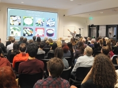21日に総領事公邸料理人による寿司の紹介と寿司作りの実演が披露されました。寿司の紹介では、現在の握り寿司が江戸時代に誕生したことやその当時は現在の握り寿司のものより2倍近く大きかったこと、江戸時代以前に誕生した「熟れ寿司(なれずし)」や「飯寿司(いずし)」の歴史とその材料や作り方について紹介しました。実演では、握り寿司以外に山葵のおろし方も披露し、参加者の方々にも山葵のおろし方を体験してもらいました。参加者は、江戸時代の大きめサイズと現在のサイズの握り寿司をそれぞれ試食し、活発な質疑応答がなされ、海外でもよく知られている日本食の「寿司」をより深く理解できる機会となりました。