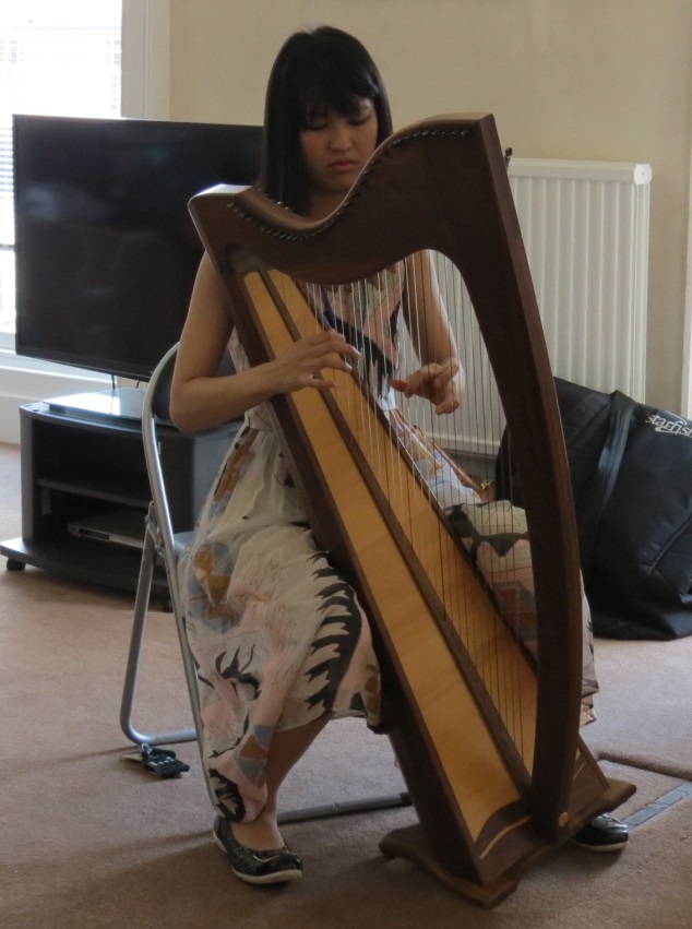 松岡さんは、日本の童謡の「赤とんぼ」や「あんたがたどこさ」などをスコットランドの音楽と掛け合わせた自作曲を作られており、グラスゴーの王立スコットランド音楽院(The Royal Conservatoire of Scotland)の大学院生としてケルティックハープについて来年の夏まで勉強されるとのことです。